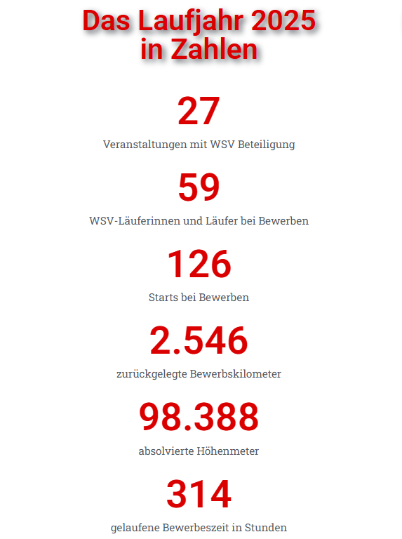 Insgesamt 59 Läuferinnen und Läufer vertraten den WSV im abgelaufenen Jahr bei 59 verschiedenen Bewerben. Nachfolgend ein paar Details: